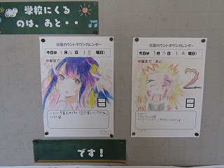 いよいよ明日は卒業式です。最後の日めくりカレンダーは美麗なイラストです。