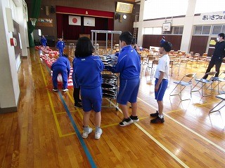 今日は45年生以外はみんな早く帰ります。3年生の教室に行っていなかったので慌てて行ったらすでに椅子は卒業式会場に運ばれていました。