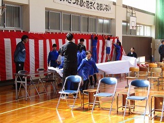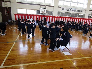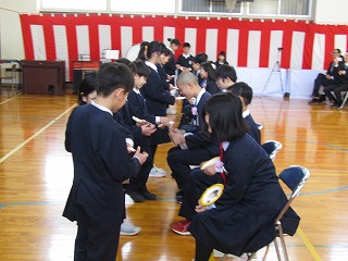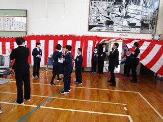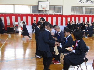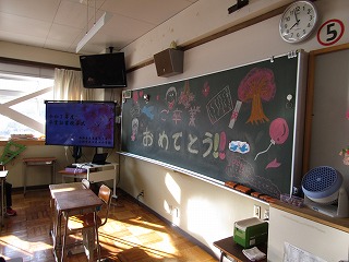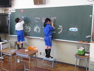 そして、定刻通り卒業式が行われました。卒業生も在校生もすばらしく覇気のある態度で、招待した来賓の方々も感激しておられました。卒業生退場のあと、教室で最後の学活があり、続いて6年生の卒業を祝う会を行いました。