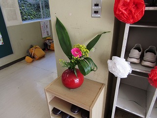卒業生達は今日は緊張すると思いますが、その前にいつもの仲間とほっとする時間を過ごしていました。花々も祝福しています。