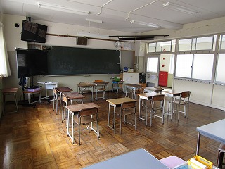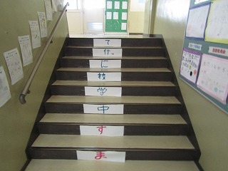 寂しげに学級目標が残されていました。教室移動が終わると1年教室が空っぽになります。