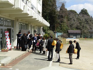 たくさんの在校生達が涙を流して見送っています。中学校でも元気にがんばってね!子どもたちのおかげで心のこもった卒業式と祝う会ができて本当に良かったです。