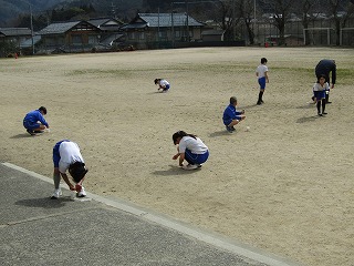 2限目です。3年生達はグラウンドで一生懸命に・・・