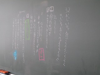 黒板に話し合いのあとがあります。命の大切さについて考える時間だったようです。