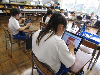 教室の後ろではタブレットで筆算の仕方を確かめていました。