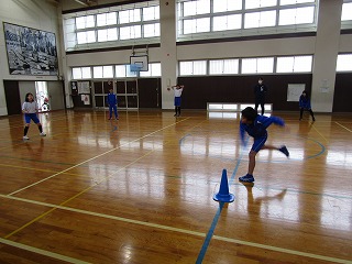 5限目です。時間割の関係で4年生の体育をあまり紹介していなかったことに気づいたので見に行きました。音楽に合わせてダンスを発表していました。