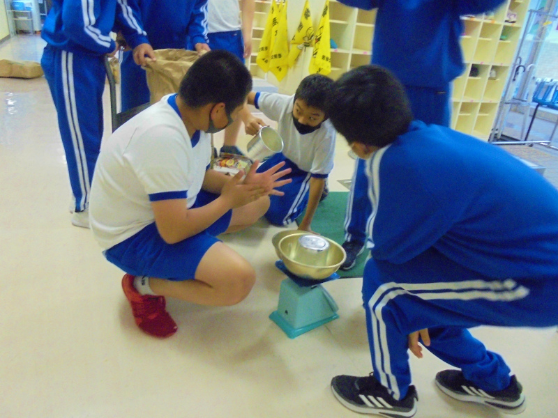 次は、お米の計量作業!