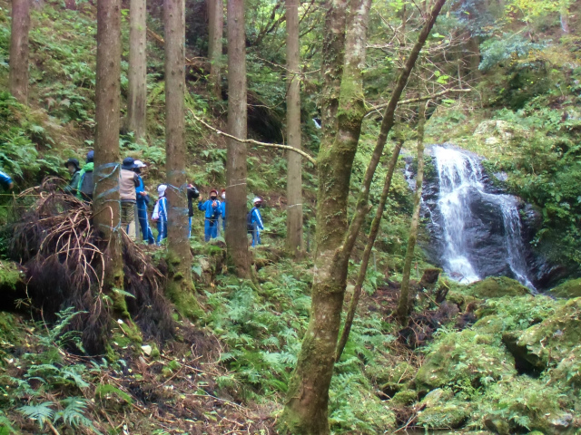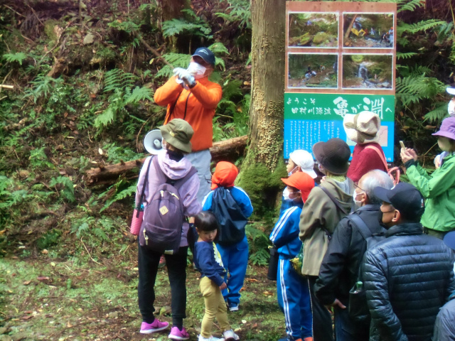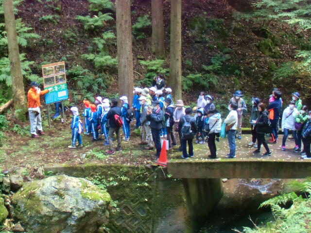 亀が淵の滝について各班に詳しく説明してくださいました。