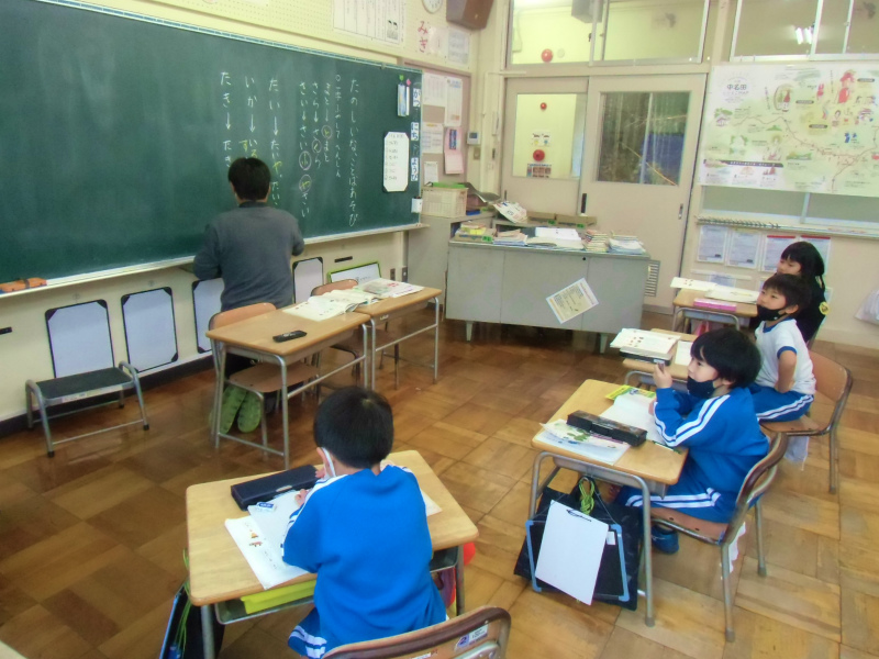 1/30(月)には、地村さんに中名田小学校へお越しいただき、