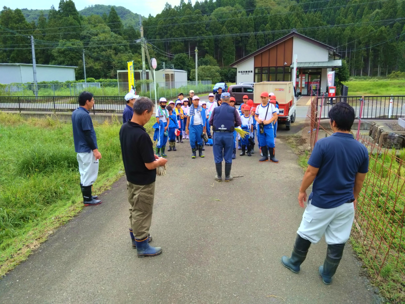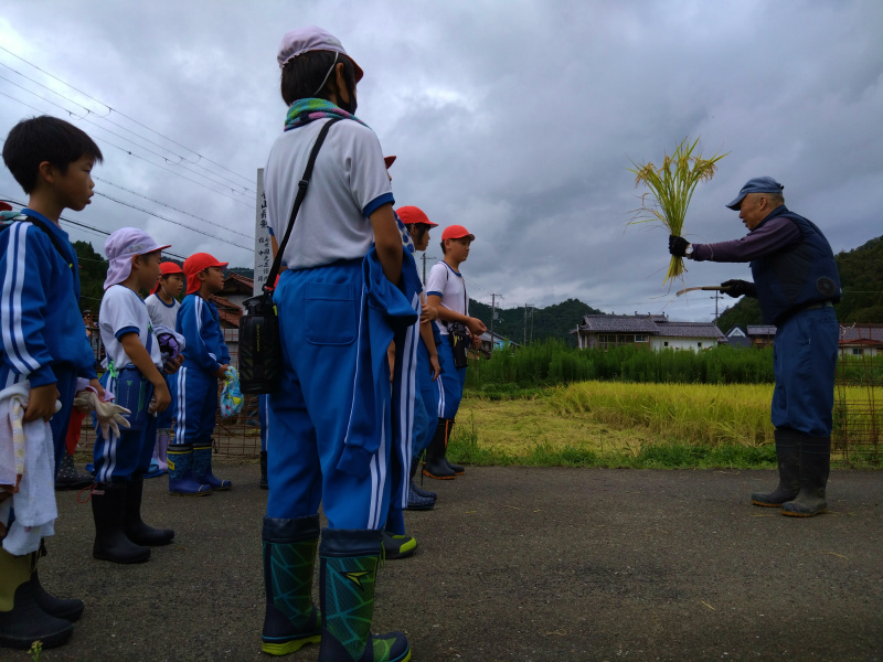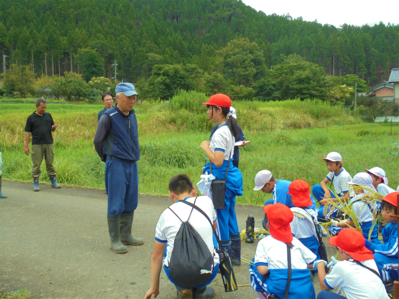 はじめに、東さんから稲刈りの仕方について説明していただきました。