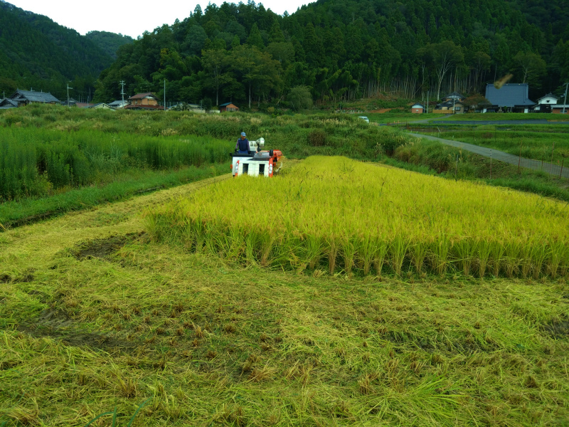 すると、東さんが残りをコンバインで軽快に刈り取っていきます。