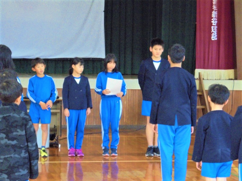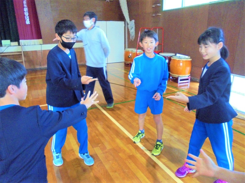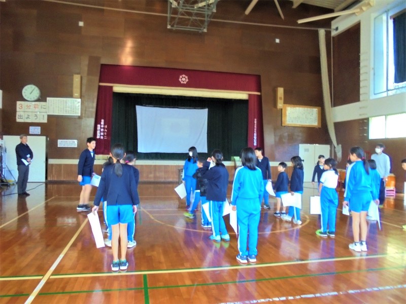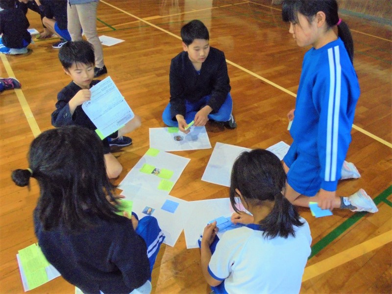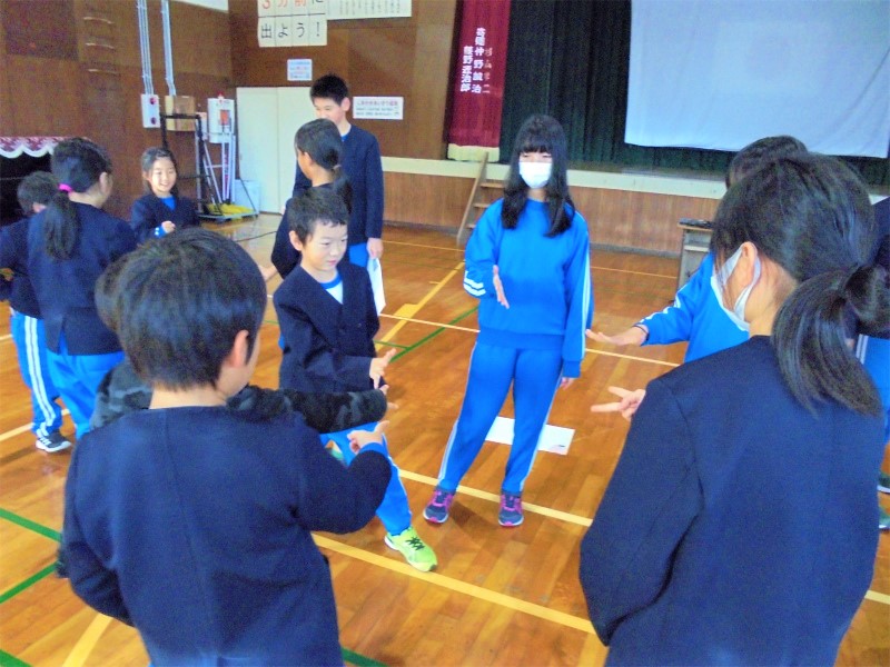 縦割り班のメンバーでじゃんけんをして、全員同じなら座るというゲームです。