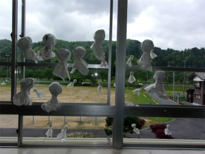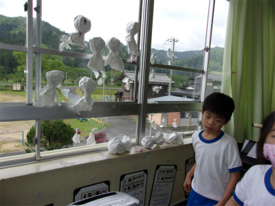 低学年の教室には、大小様々なてるてる坊主がありました。
