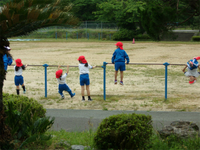 授業の合間には鉄棒で前回りや逆上がりを練習する姿も見られます。