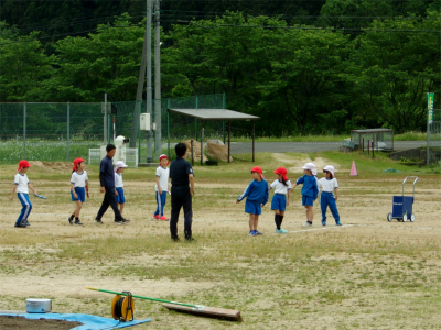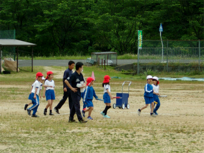 春になってから校庭には草が伸び始めたり、冬の間に部分的に土が盛り上がったりして、思うようにグラウンドを使うことができませんでした。ですが、地域のボランティアの方や職員の除草作業、土を平らにならす作業によって、ようやく走ることができるようになってきました。