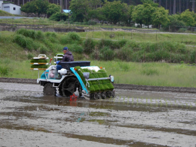 残った場所は、東さんが機械で植えてくださいました。秋には、稲刈りが待っています。