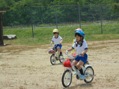 みんな上手に運転しています。ブレーキのかけ方は左側(後輪)ブレーキを中心にかけます。