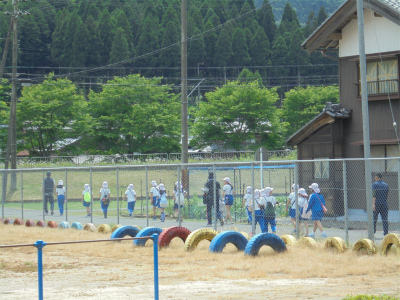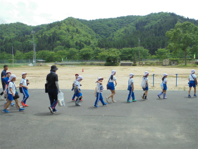 5/27 1~4年生が連れ立って、長田寺に向け出発しました。