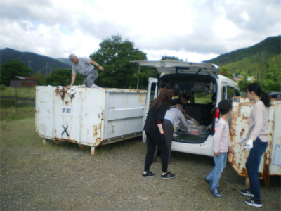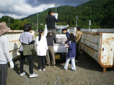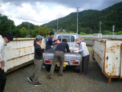大人だけでなく、子どもたちも車からコンテナまで運ぶのを手伝ってくれました。
