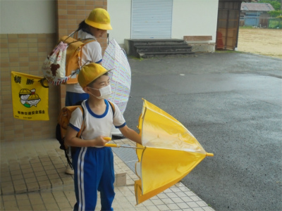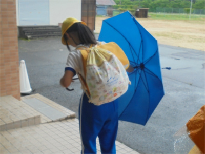 傘を差してきたらそのまま傘を閉じて傘置き場に直行という姿が多い中、本校の子どもたちは、「傘の片付け方」が代々受け継がれてきているそうです。ちょっとしたことですが、ほんわかとした気持ちになりました。