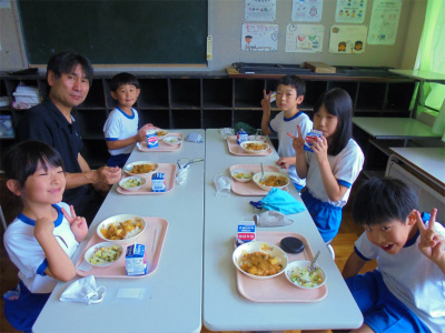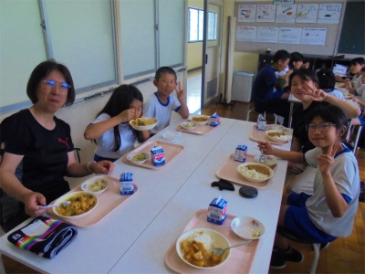 こちらは先生が3人のグループになっていました。でも、全く緊張せず食べていました。次の全員給食も楽しみです。