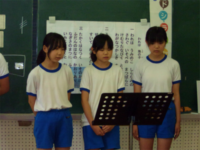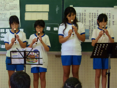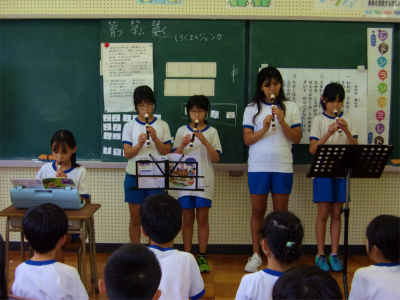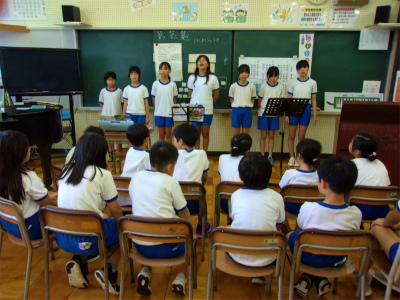 7/2 昼休みに、高学年が音楽の授業の成果を発表してくれました。