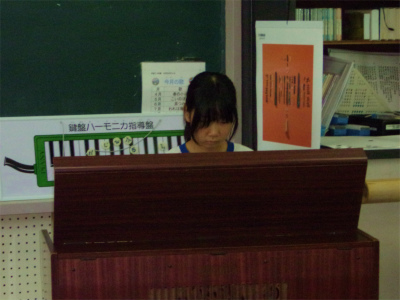 メロディーを追いかけるように鍵盤ハーモニカを弾く人、