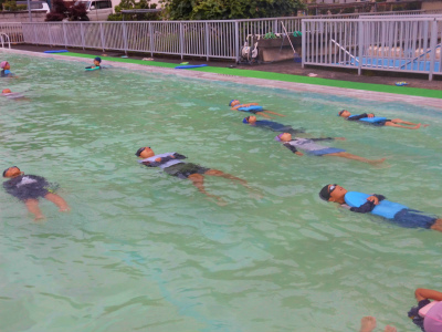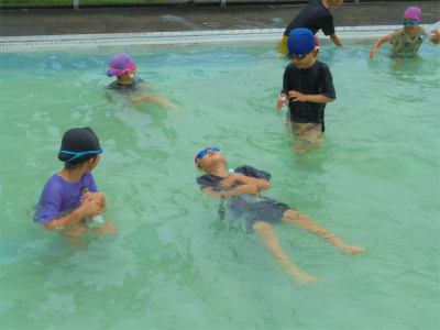 大プールに移動した後は、各自背浮きで浮く練習をしました。