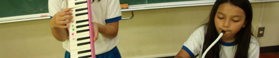 鍵盤ハーモニカは、練習中はホースを使って鍵盤を見ながら演奏しますが、本番では手に持って立って演奏します。曲を覚えるだけでなく演奏の仕方も練習しなければなりません。