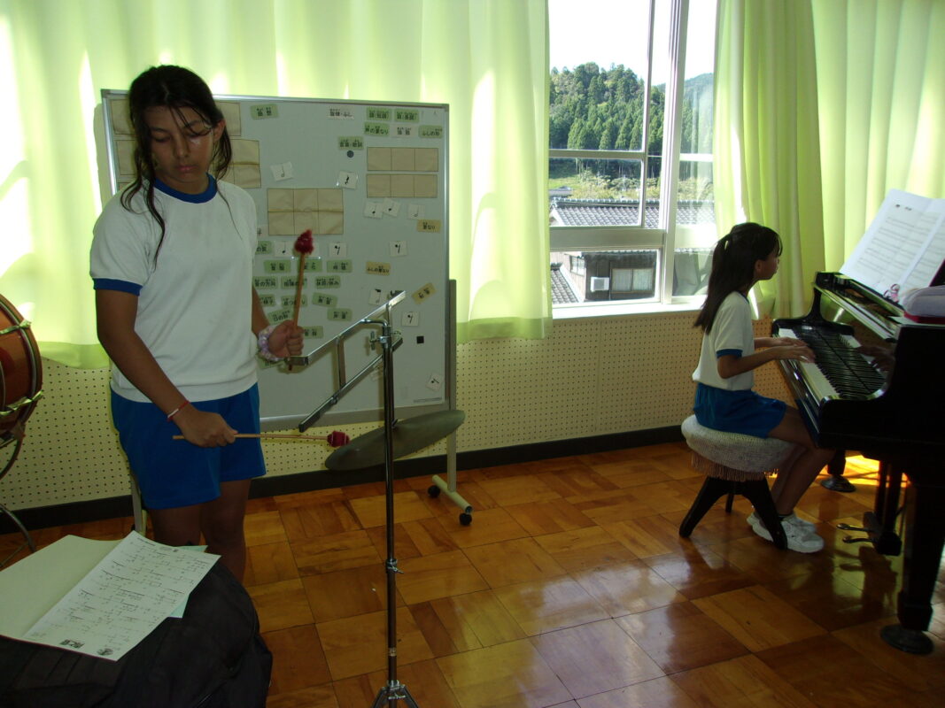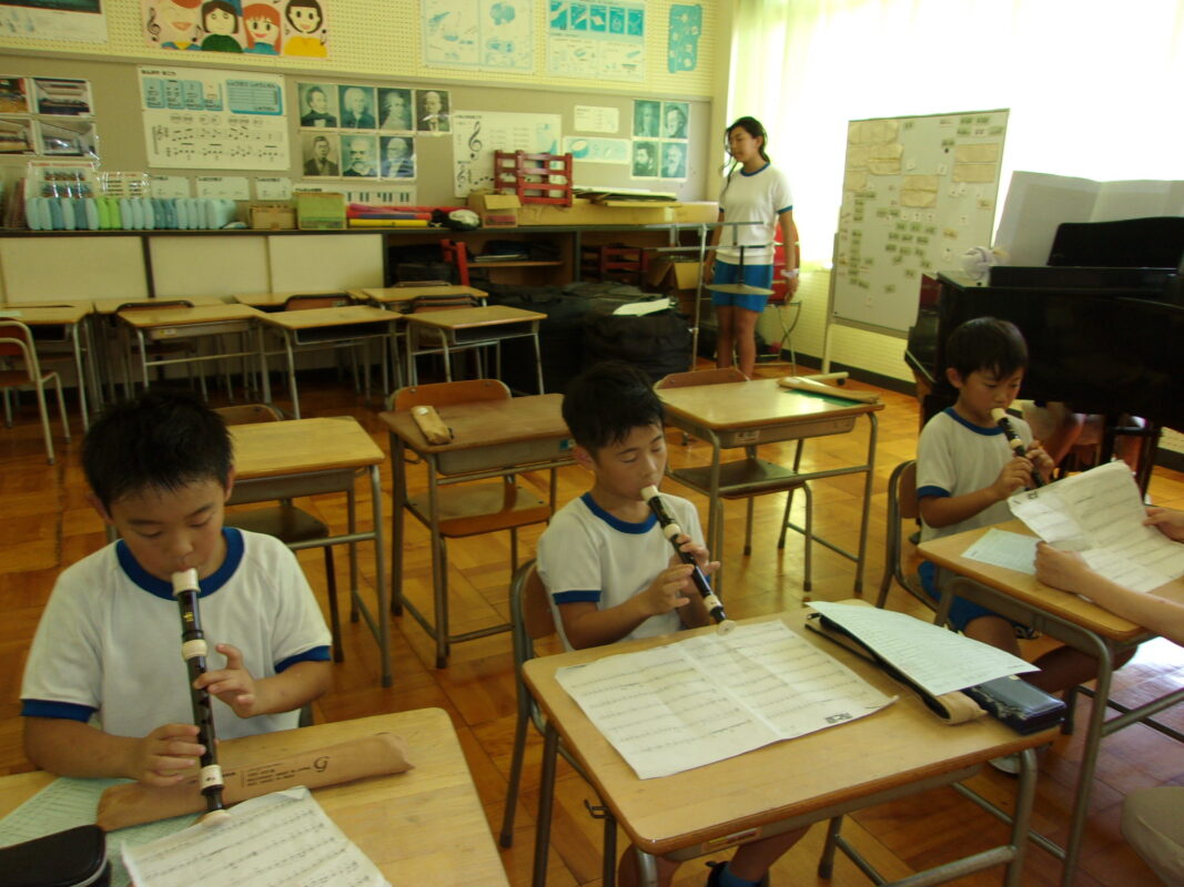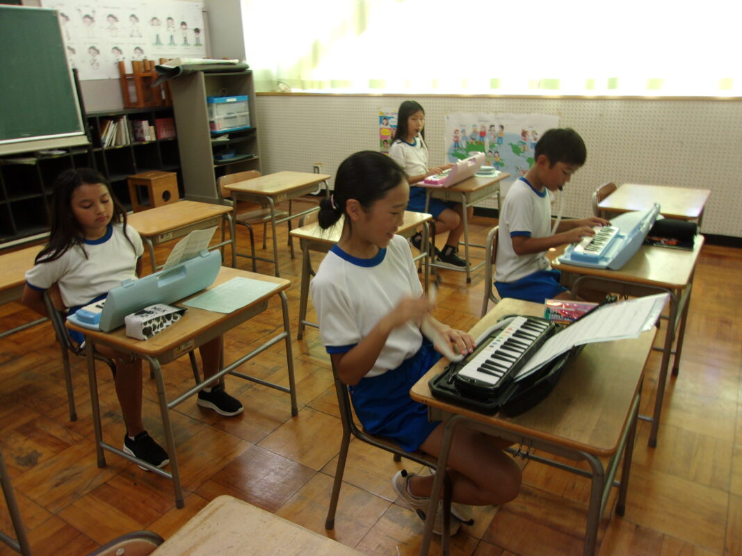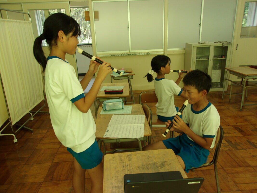 9/18 11月にある小浜市の音楽会に向け、3~6年生は7月から練習を始めました。3年生は、初めてのリコーダーで、その上初めての音楽会参加です。