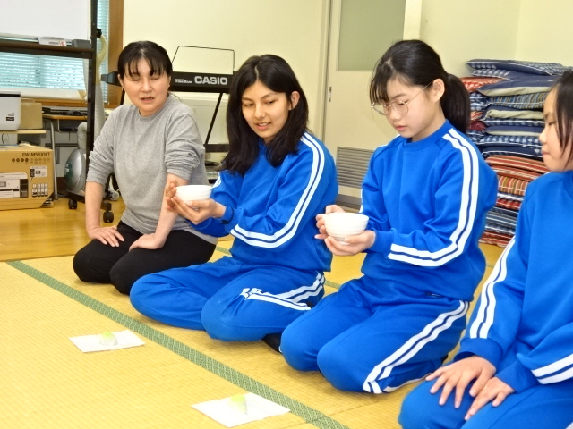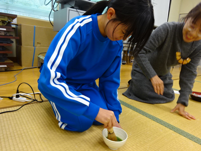 今回は、ALTの先生も一緒に茶道を楽しみました。日本文化に親しむ楽しい時間となりました。
