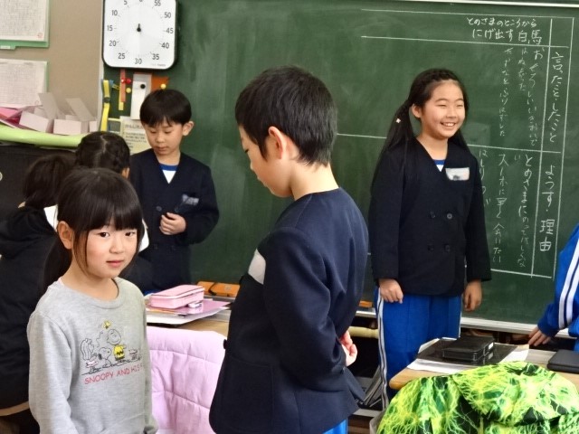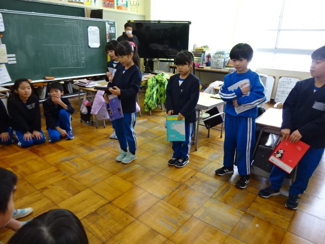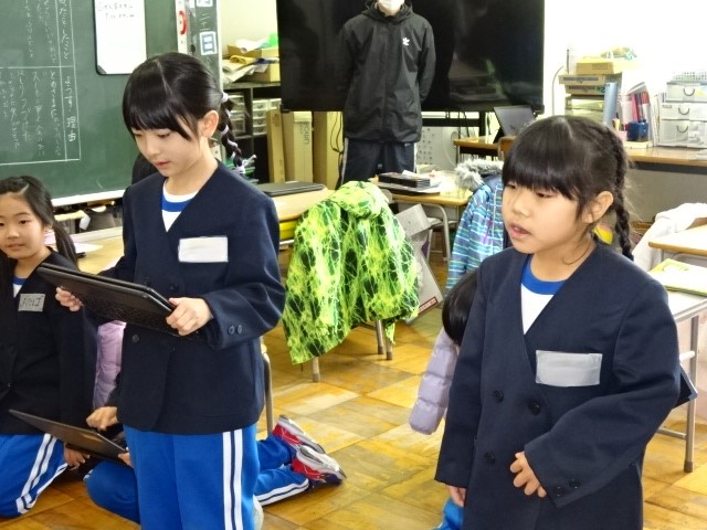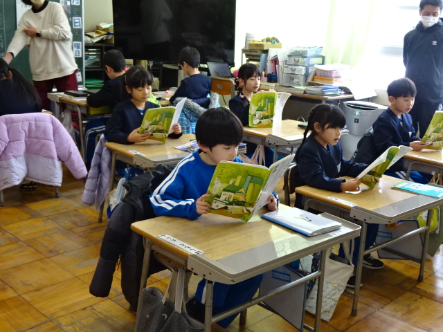 次は、短い時間でしたが国語の授業を見てもらいます。1年生は音読をしてくれました。