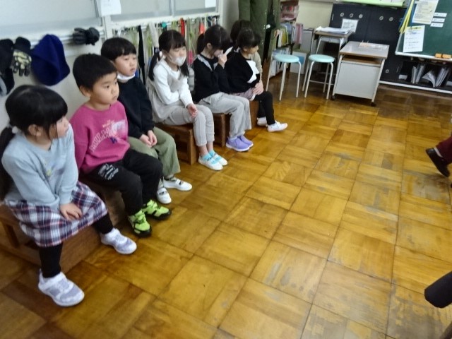 2/21 4月からの小学校入学に備え、中名田保育園とチューリップ保育園の年長さん6名が、中名田小学校に体験入学しました。