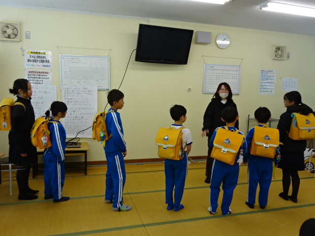 この日は、3時から市庁舎で教育委員会表彰式があり、高学年が参加しました。まず、式の予行練習が行われました。