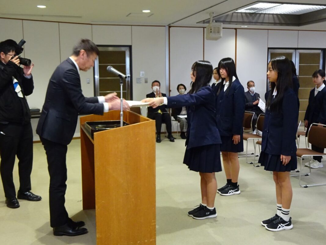 本番では、教育長から表彰状を頂きました。6年生が代表で受け取りました。