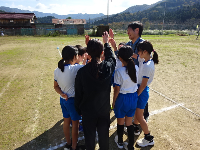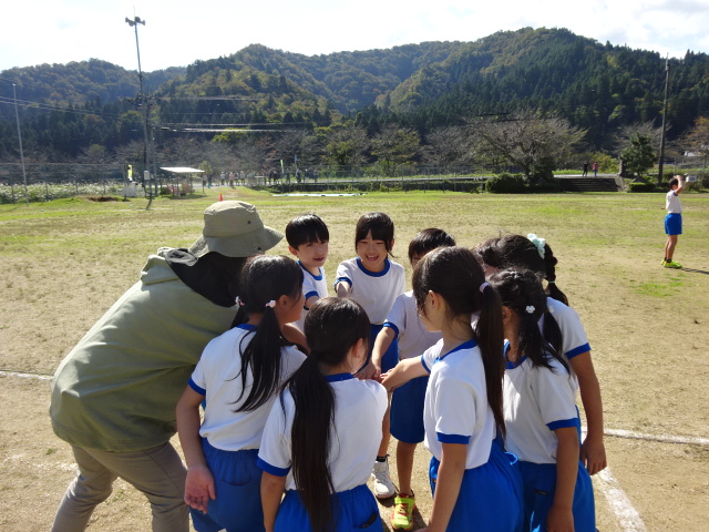 最初にスタートの中学年が、輪になって掛け声をかけます。
