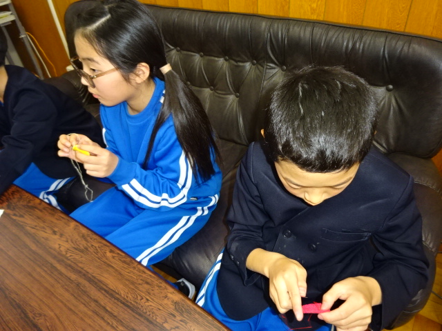 さて、建国記念の日の翌日の 2/12 中学年の人たちが校長室に遊びに来ました。