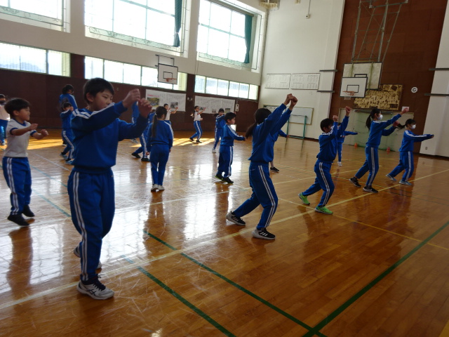 冬の体育館で、よさこいの練習が始まりました。