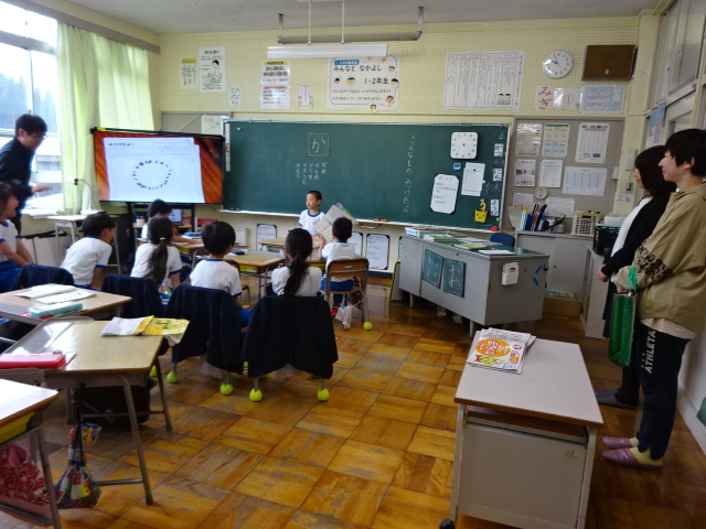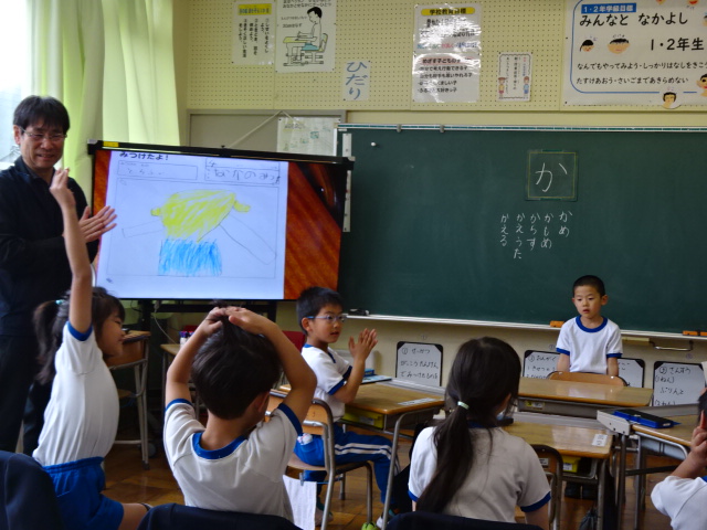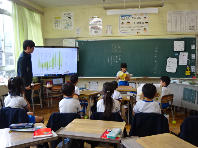 同じ日、1年生の在籍する低学年の教室には、3月までお世話になった保育園の先生の姿がありました。