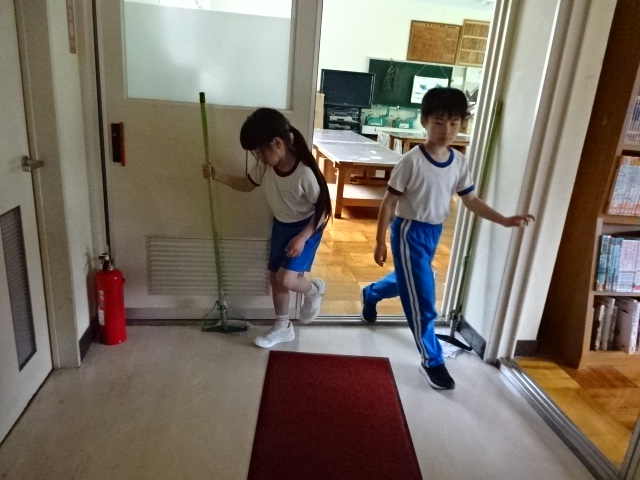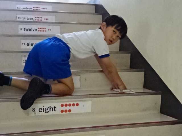 掃除中はおしゃべりはせず、黙って集中して行います。