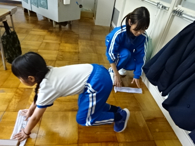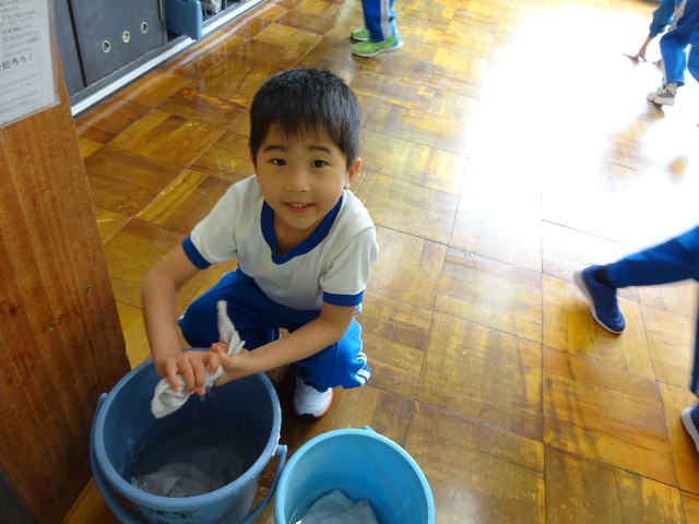 ぞうきんがけは疲れるけれど、教室の中なので何とかできます。体育館ならちょっと大変ですね。