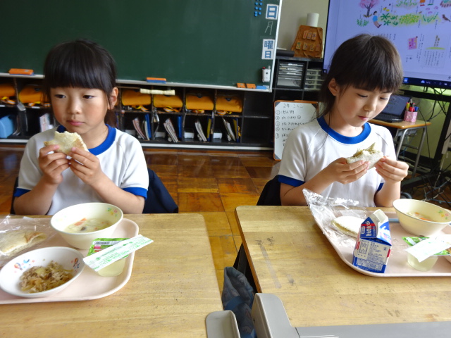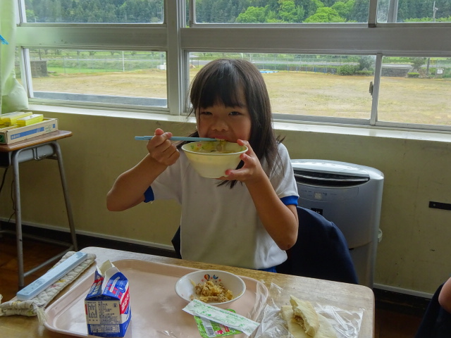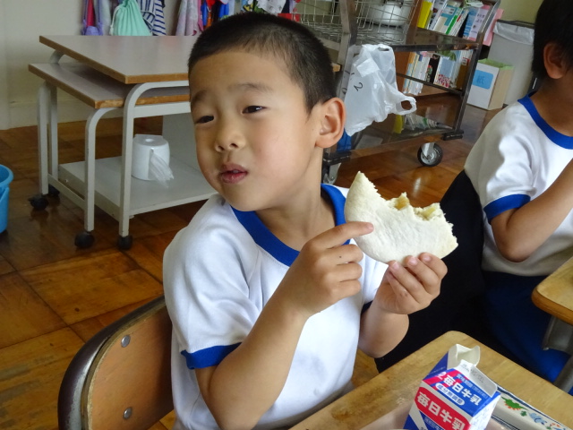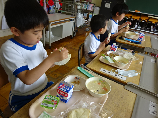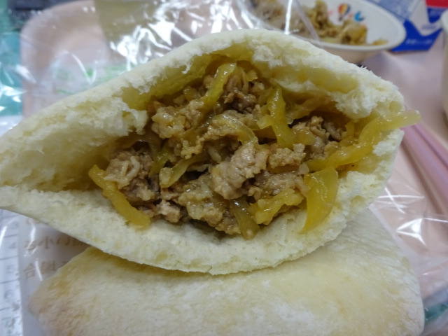 しかし、1年生にとっては初めてのピタパン。焼き肉を半分ほど食べてしまってから、ピタパンの食べ方を知りました。残っている焼き肉をせっせとピタパンに詰めます。
