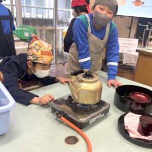 2025-05-07 / 最終更新日時 : 2025-05-07 admin_nishizu 活動報告 お湯をわかして・・・(5年) 先日、5年生が家庭科の時間にお茶を入れていました。 この日のために、数日前の授業では・・・、 コンロの使い方を確認していました。 その学びを活かして、この日は完璧です! お湯が沸いたら、お茶の準備です! おいしくいただけ […]
