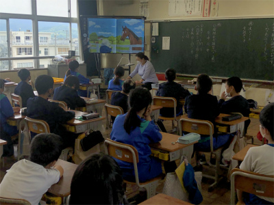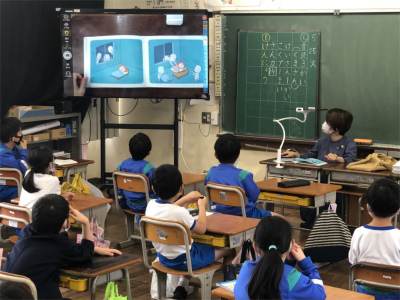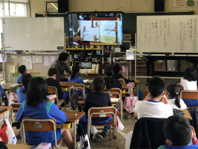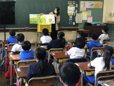 今日は4人のボランティアの方が朝読書の時間に読み聞かせをしてくださいました。絵本をモニターに拡大してくださる方もあり、子どもたちも集中して聞いていました。