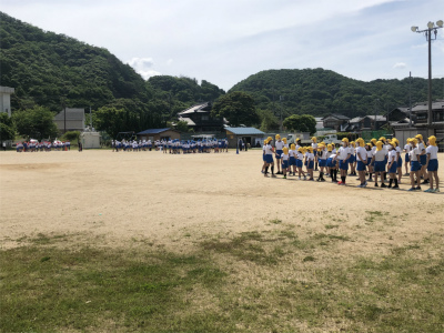 2021-05-26 / 最終更新日時 : 2021-05-26 admin_nishizu 活動報告 体育大会に向けて② 朝から晴れて、絶好の体育大会の練習日和です。 今日は1時間目~6時間目まで、練習と準備の一日でした。その一部を紹介します。 初めて、4色が外に集合しました 開会式の隊形に並んでの練習です もちろん選手宣誓の練習も! 1・2年生で行う低学年リレーも初めて走りましたが、うまくバトンが渡せてホッとしました。 リングバトンを持ってスタート バトンパスが勝敗を分けるよ 体育大会本日まで、あと4日です。