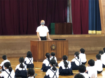今日で1学期が終わります。子どもたちは2回目の制服登校で終業式に臨みました。