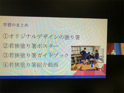 6年生は「若狭塗り箸について学び、魅力を発信しよう」をテーマに、ゲストティーチャーに教えていただいたり体験したりしたことをもとにPR活動をしたことを発表しました。