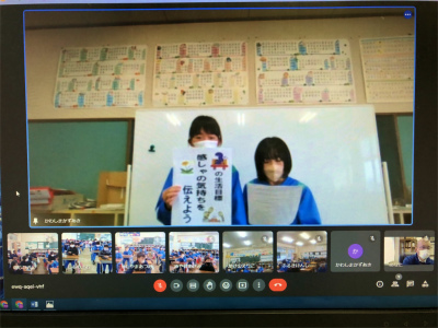 2月の生活目標「寒さに負けずにがんばろう」について振り返る集会をリモートで行いました。
