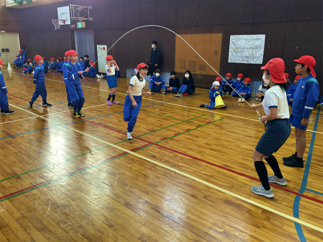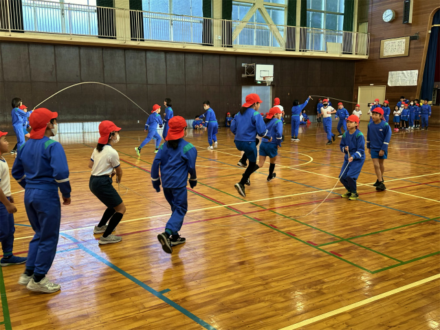 今年は短縄での持久跳び・技跳びに加え、児童会主催の色別対抗大縄跳び(8の字)もおこなわれます。2学期の朝運動からこの大縄跳びを練習してきています。2分30秒でとんだ回数を競います。