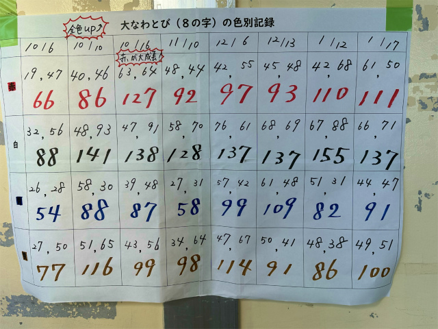 怖くては入れない人はいなくなりました。本番まであと一ヶ月、各色、どこまで記録を伸ばせるか楽しみです。